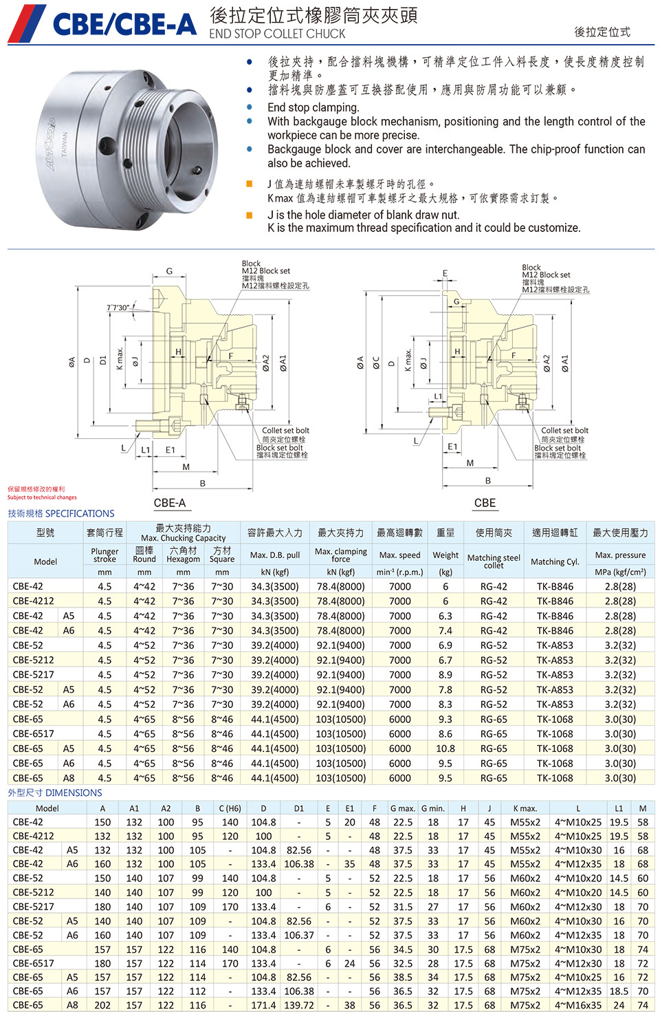 CBE/CBE-A 後拉定位式橡膠筒夾夾頭