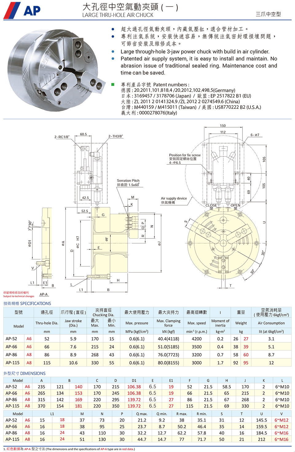 AP 大孔徑中空氣動(dòng)夾頭(一)
