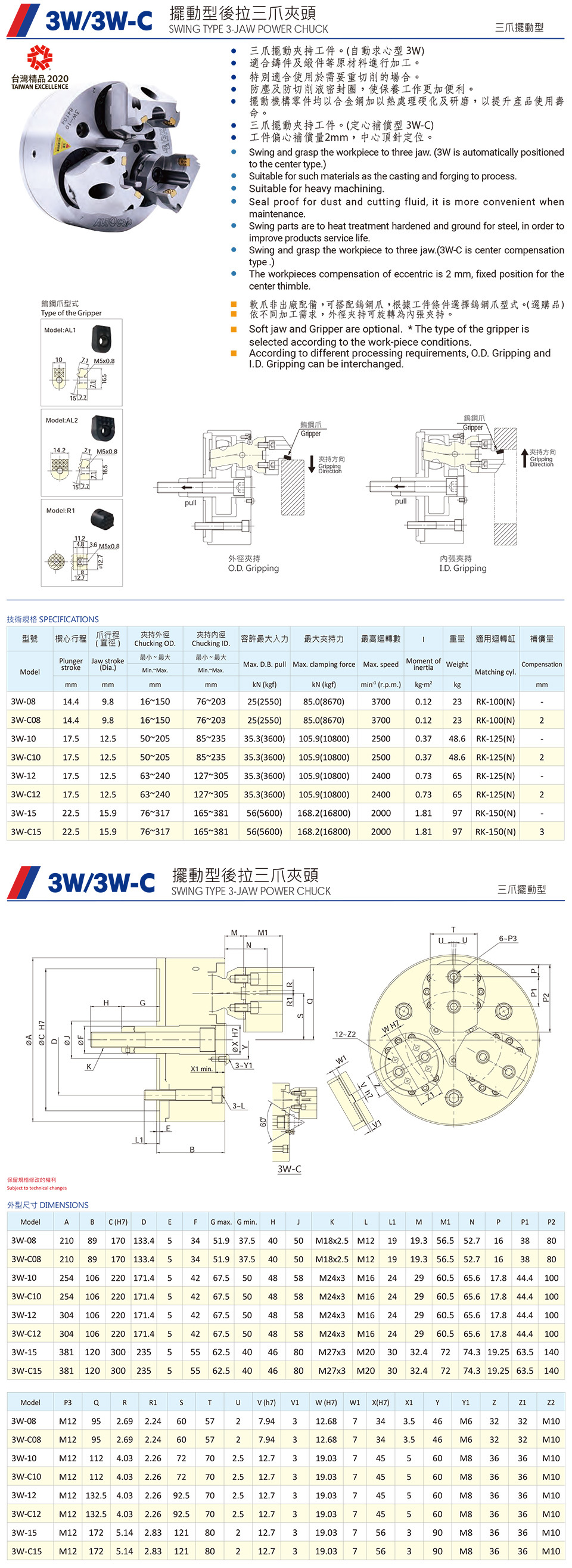 3W/3W-C 擺動(dòng)型後拉三爪夾頭