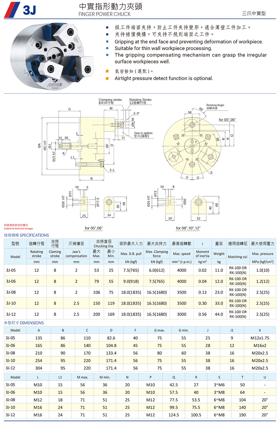 3J 中實指形動力夾頭