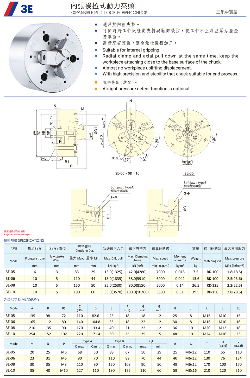 3E 內張後拉式動力夾頭