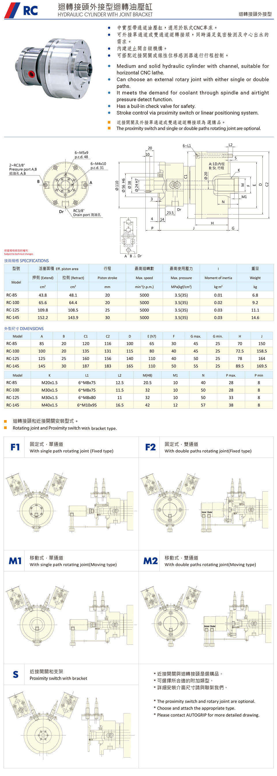 RC 迥轉(zhuǎn)接頭外接型迥轉(zhuǎn)油壓缸