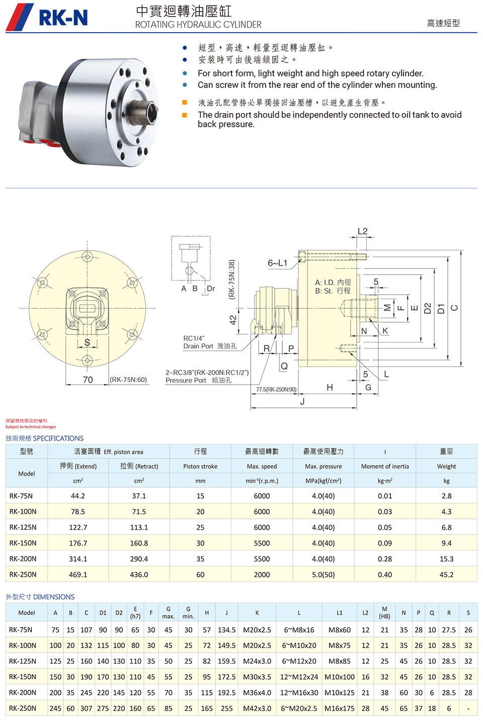 RK-N 中實(shí)迥轉(zhuǎn)油壓缸