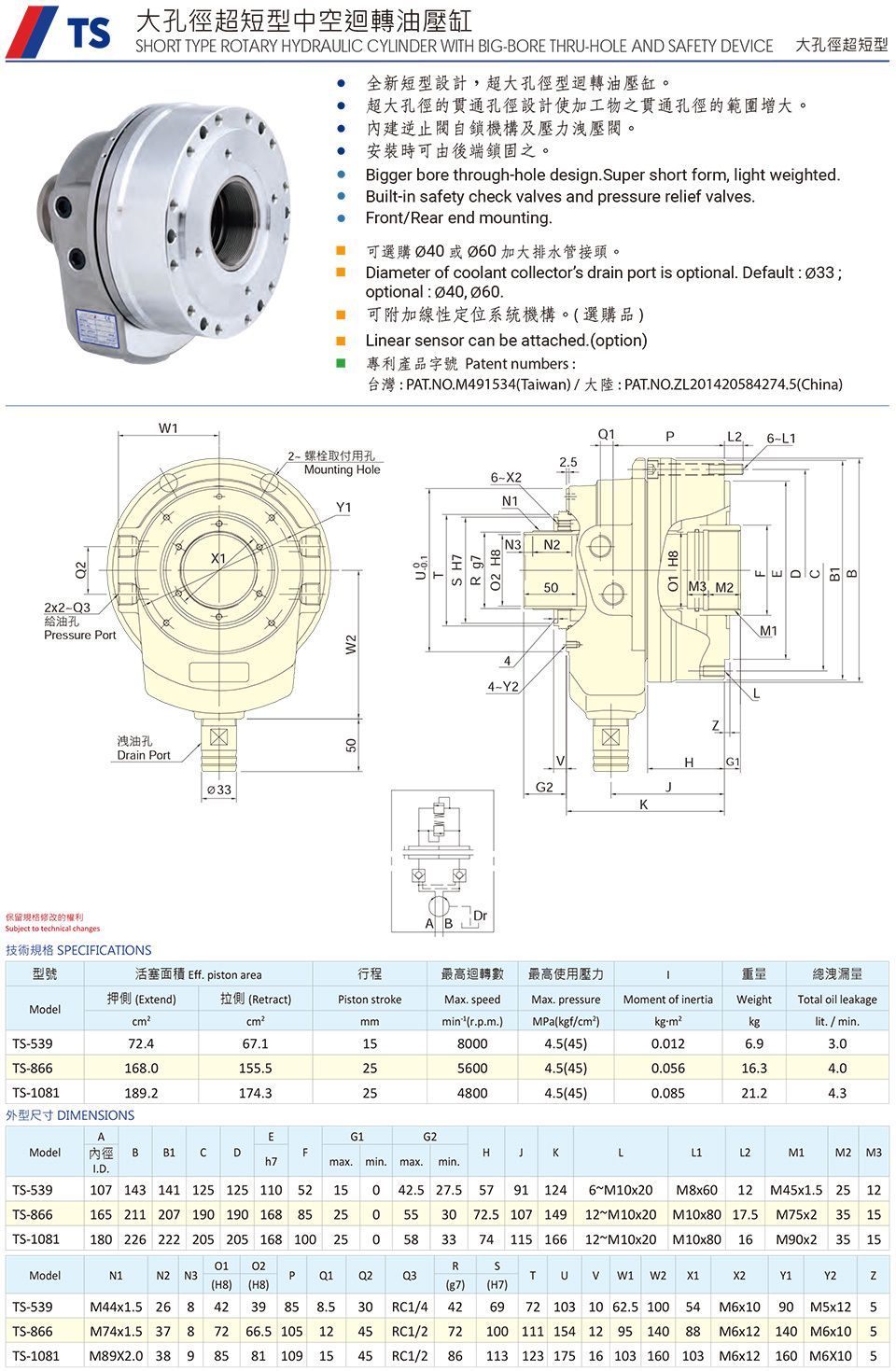 TS 大孔徑超短型中空迥轉(zhuǎn)油壓缸